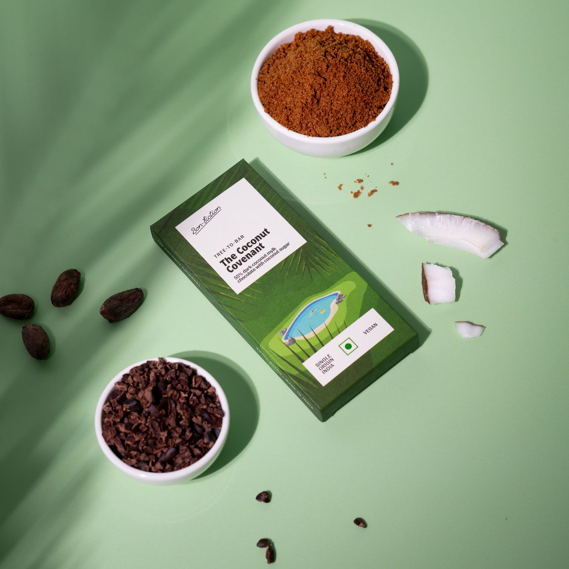 Experience the unique delight of The Coconut Covenant. Our 55% Dark Coconut Mylk and Coconut Sugar chocolate bar is dairy-free, organic, and vegan, creating an indulgent treat sure to satisfy. The Coconut Covenant is an ode to the coconut plantations by whose shade our cacao trees grow.
