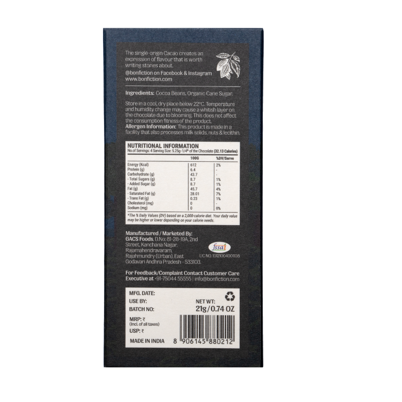 Crafted with minimalist elegance, this 91% dark chocolate bar, composed solely of two ingredients, epitomizes the art of chocolate making. It offers an intensely rich cocoa experience, where the depth and purity of flavor are paramount. Each bite unfolds layers of robust, dark chocolate, a sophisticated indulgence for the discerning palate.